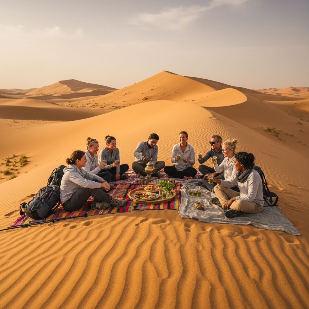 Along the way, visit a Berber village, enjoy traditional mint tea, and immerse yourself in the silence and beauty of the Sahara.