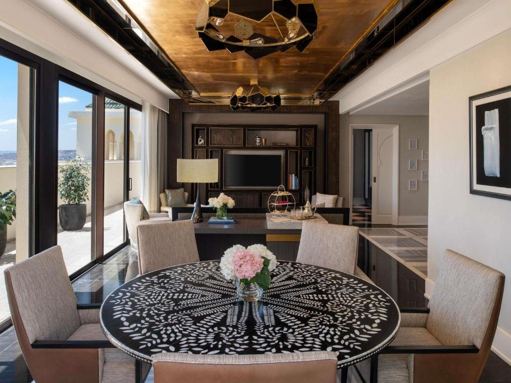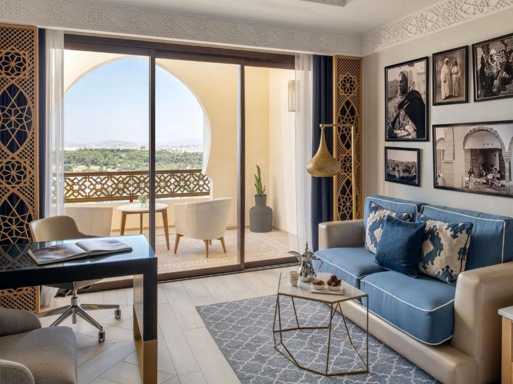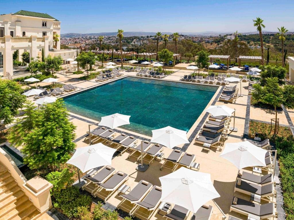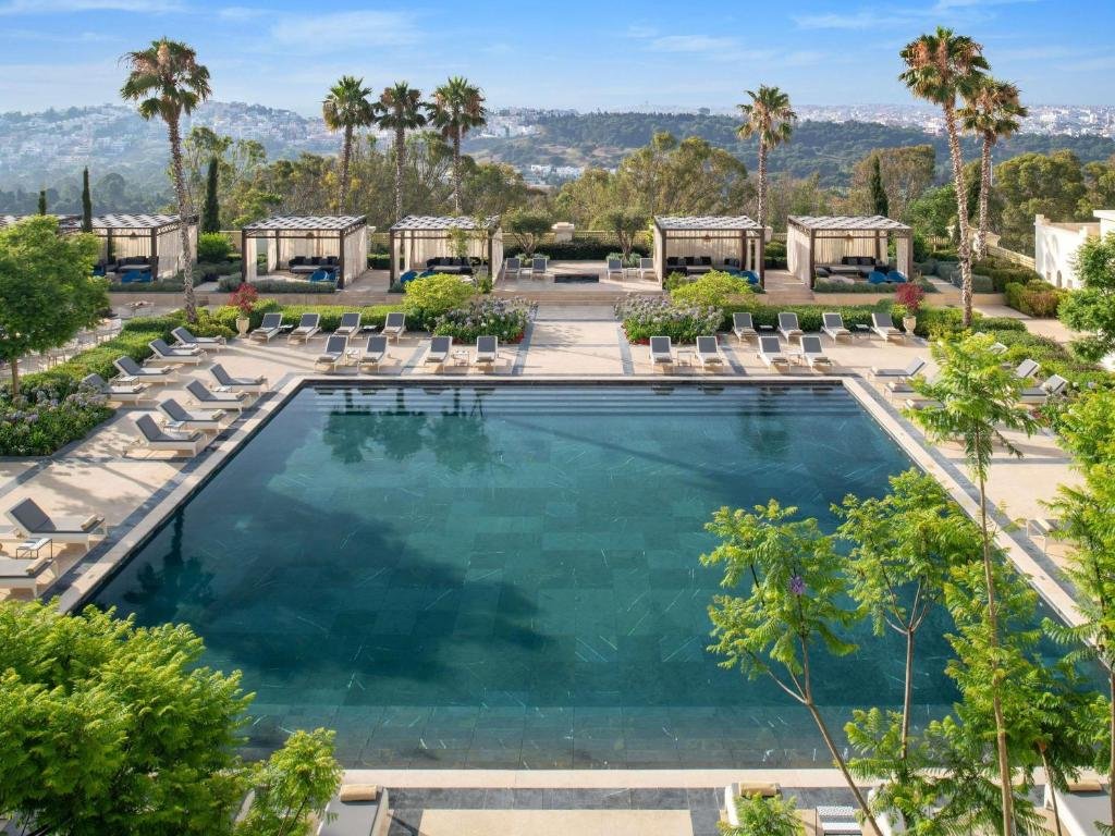 The Fairmont Tazi Palace Tangier is a prestigious 5-star retreat perched in the lush hills overlooking the historic Medina of Tangier. Originally built in the 1920s as a royal residence, this magnificent palace has been beautifully restored, combining authentic Moroccan craftsmanship with contemporary elegance. Surrounded by centuries-old eucalyptus forests and landscaped gardens, the hotel offers a peaceful sanctuary just minutes from the vibrant city center. Featuring 133 refined rooms, suites, and penthouses with private terraces and panoramic views, the property ensures exceptional comfort and sophistication. Guests can indulge in a diverse culinary experience across its signature restaurants and bars, unwind at the luxurious Fairmont Spa with hammam and wellness facilities, or simply relax by the stunning outdoor pool. At OB Holidays, we select this exceptional establishment for its perfect blend of heritage, luxury, and world-class service, guaranteeing an unforgettable stay in Tangier.