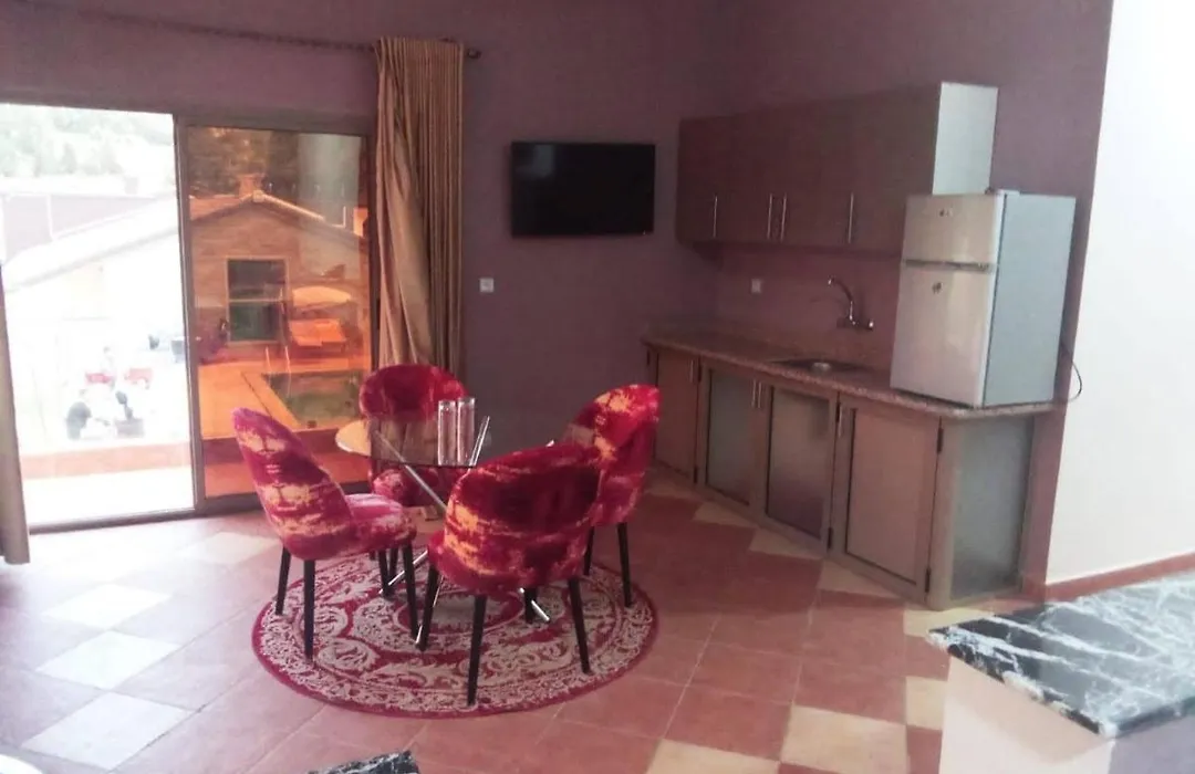The hotel offers air-conditioned rooms with free Wi-Fi, flat-screen TVs, and private bathrooms. Some rooms feature terraces or balconies with garden or mountain views. Guests can enjoy Moroccan and international cuisine at the on-site restaurant, relax by the outdoor swimming pool, or unwind in the hotel’s garden and lounge areas. The hotel also provides 24-hour reception, free private parking, and attentive staff for a comfortable stay.