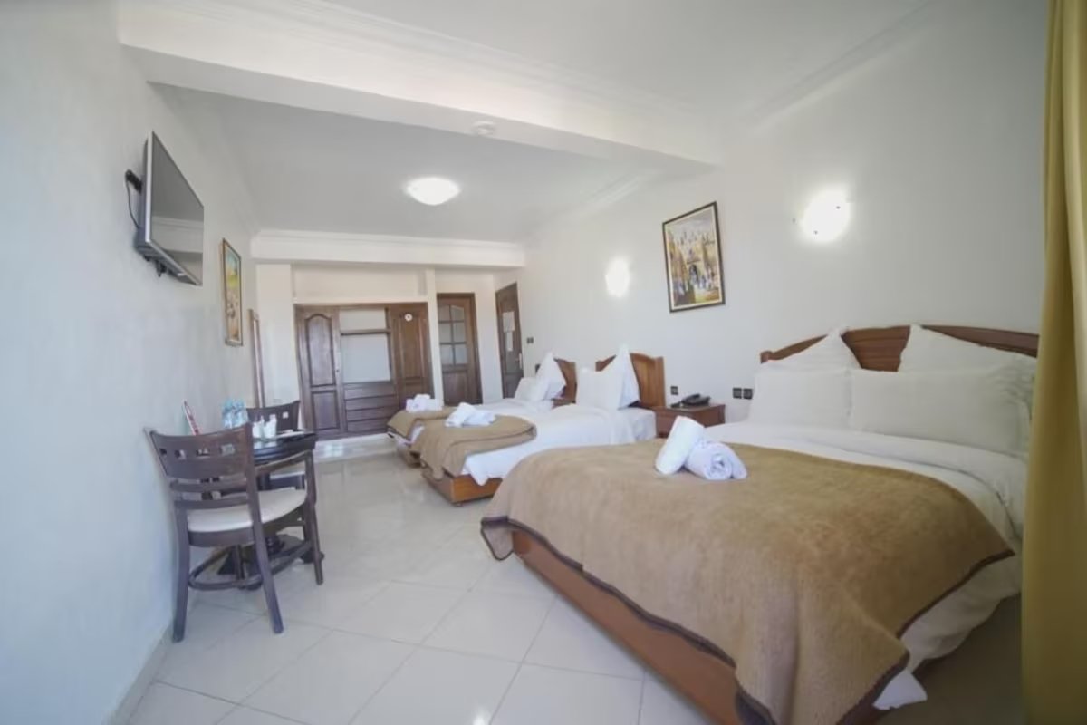 The hotel features beautifully appointed guest rooms with air conditioning, free Wi‑Fi, flat‑screen TVs, and private bathrooms. Decorated with Moroccan touches and warm tones, the rooms create a cozy and authentic ambiance. Guests can begin their day with a flavorful breakfast, unwind on the rooftop terrace, or relax in the welcoming lounge area. With friendly staff and 24‑hour reception services, Hotel Riad Asfi ensures a pleasant and memorable stay.